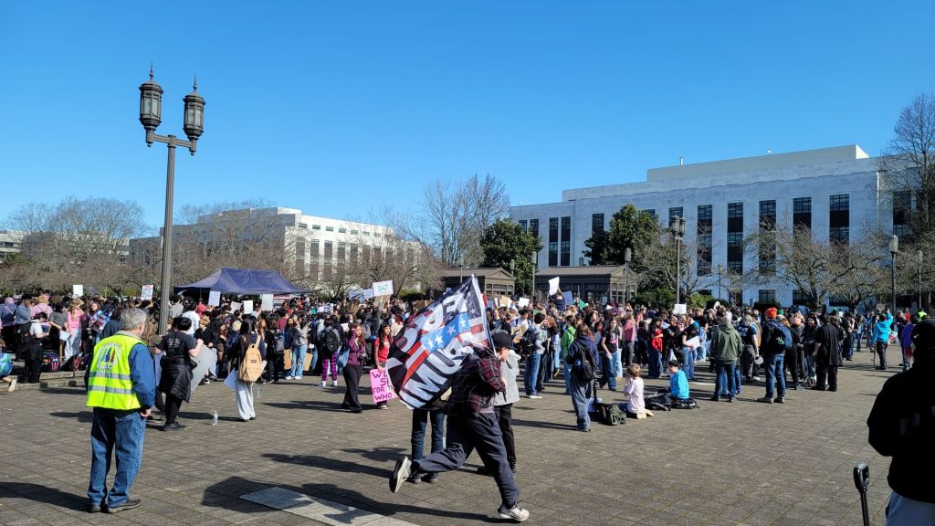 About two thousand students arrived outside the state capitol building in Salem, Oregon on Friday, to protest against the Trump administration and ICE. They walked out of their schools to make their voices heard, rather than quietly accept the unacceptable regime of an unaccountable, arbitrary secret police force abducting and brutalizing their neighbors, friends, and families. They stood up for their cultures, and they stood up in solidarity for one another. They made a great noise, and were not intimidated by those who tried to silence them.